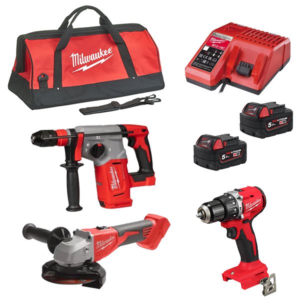 Spedizione gratuita Kit Smerigliatrice Trapano e Tassellatore 2 Batterie 18V 5Ah Milwaukee M18 - BLPP3D-502B Carrello Prezzo € 839,00 Spedizione assicurata - Consegna in 24/48h. Per info 392 5034908 - 0824 1716422