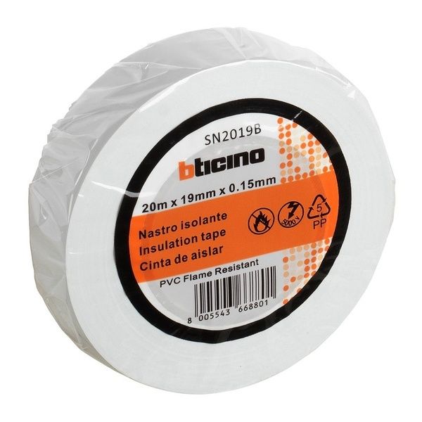 Nastro Isolante In Pvc Con Plastificante Autoestinguente BTicino 19MMX20MT Bianco - BT-SN2019B - 10 Pezzi Carrello Prezzo € 9,90 Spedizione assicurata | Per info 392 5034908 - 0824 1716422