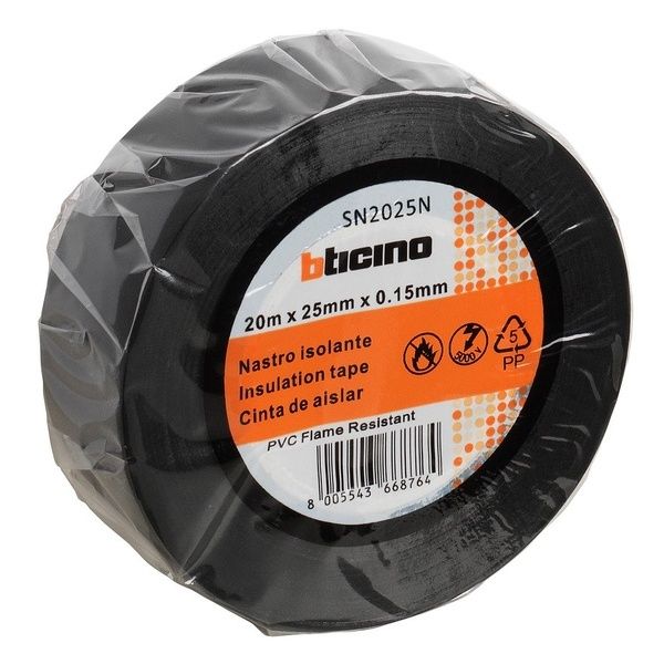 Nastro Isolante In Pvc Con Plastificante Autoestinguente BTicino 25MMX20MT Nero - BT-SN2025N - 10 Pezzi Carrello Prezzo € 12,00 Spedizione assicurata | Per info 392 5034908 - 0824 1716422
