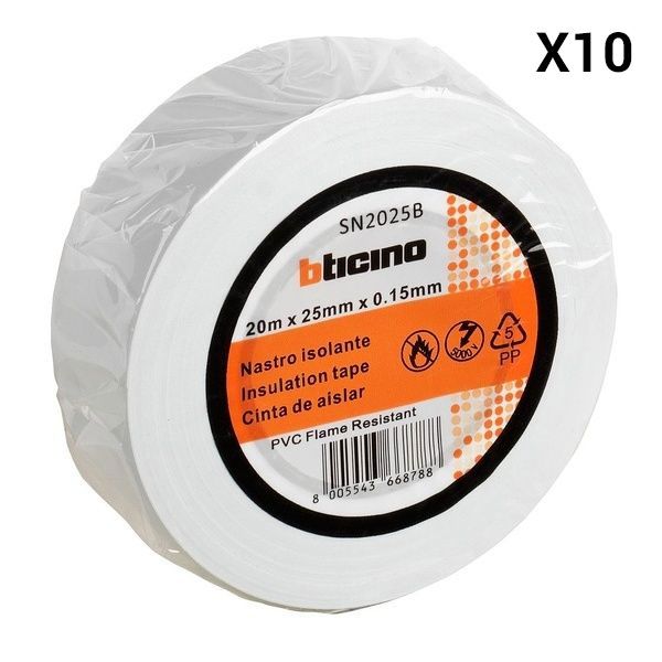 Nastro Isolante In Pvc Con Plastificante Autoestinguente BTicino 25MMX20MT Bianco - BT-SN2025B - 10 Pezzi Carrello Prezzo € 12,00 Spedizione assicurata | Per info 392 5034908 - 0824 1716422