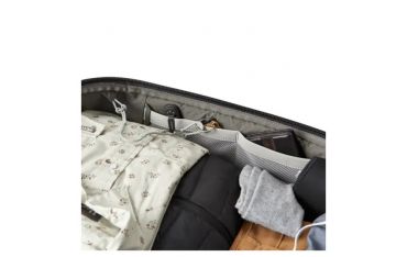 Due pannelli divisori separano la borsa in tre sezioni e si ripiegano facilmente nella tasca inferiore quando non sono in uso. Le tasche interne consentono di riporre gli oggetti essenziali a portata di mano. Le fascette di compressione modulari rimovibili possono essere utilizzate internamente o esternamente per mantenere il materiale ben fissato e sicuro.