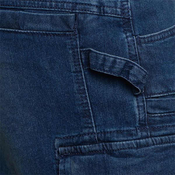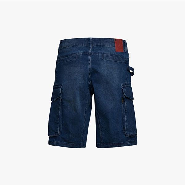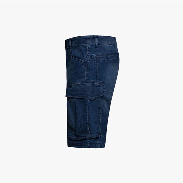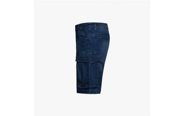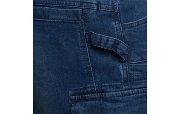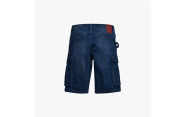 Bermuda denim leggero cargo stone washed, elasticizzato. Trattamenti e cura dei dettagli tipici della tradizione della jeanseria italiana. Tre tasconi laterali capienti e portamartello, e due tasche dietro chiuse con velcro. Vestibilità morbida con taglio moderno.