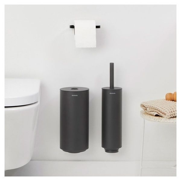 Questo fantastico trio è qui per conferire un tocco di stile alla tua stanza più piccola. Set di accessori da toilette MindSet di Brabantia inizia con un porta scopino da toilette, dotato di scopino, robusto e igienico. Il porta rotolo minimalista mantiene la carta igienica sempre a portata di mano, e il dispenser di rotoli di carta igienica contiene discretamente fino a due rotoli. Tutto quello di cui hai bisogno per abbellire la tua toilette.