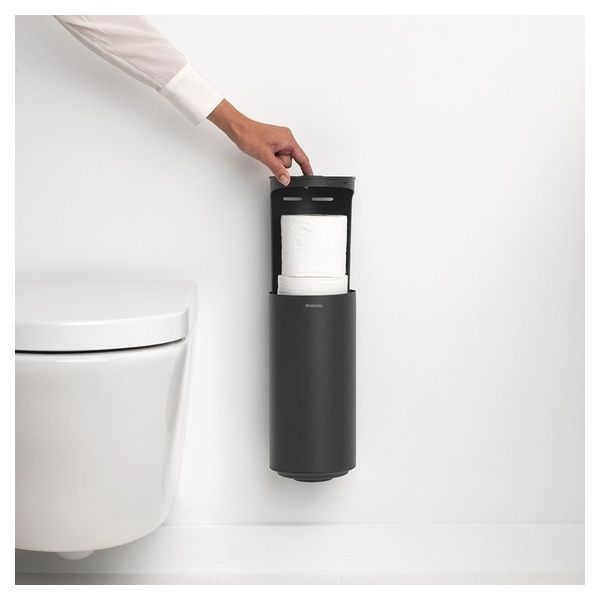 - Scorta - dispenser di rotoli di carta igienica chiuso per conservarvi 2 rotoli di ricambio, con sistema di sollevamento intelligente per un facile riempimento.