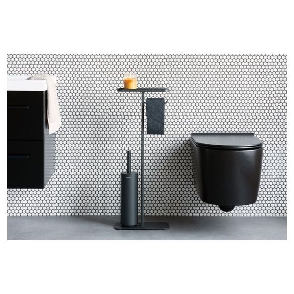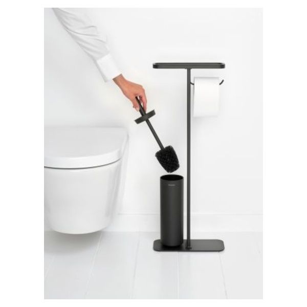 Sempre pronto all'uso e ad aggiungere un tocco di stile alla stanza più piccola: questa piantana da bagno MindSet Brabantia può reggere tutto ciò che ti serve. È felice di reggere il tuo telefono, e mantiene anche il rotolo di carta igienica e lo scopino del water a portata di mano. Discreto, disponibile e di bell'aspetto: da assumere assolutamente.