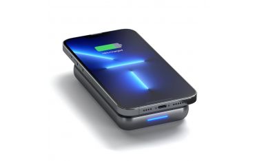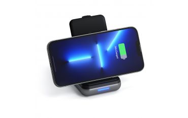 Power bank caricabatterie wireless perfetto per lo streaming di video, l'ascolto di musica o le chiamate in vivavoce. Supporta la ricarica rapida simultanea fino a 10 W totali per iPhone e AirPods.