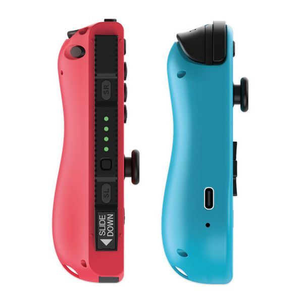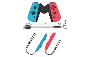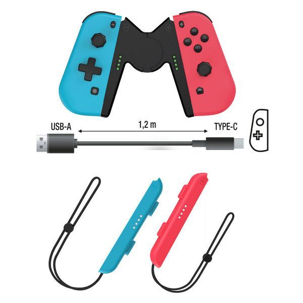 2 joy-con (destro e sinistro) analogici ultraprecisi con funzione di vibrazione e giroscopi e indicatore del numero di giocatori; 2 clip e cinghie da polso; 1 supporto per giocare in modalità pro; 1 cavo di ricarica USB TYPE-C.