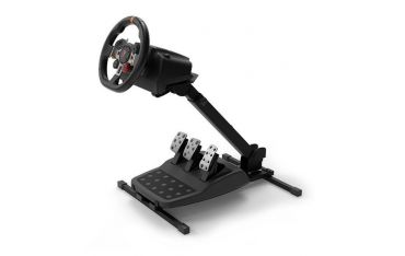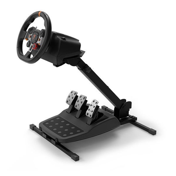 Supporto pieghevole universale in metallo per volanti da gioco. Fissaggio universale per tutti i tipi di pedaliera.