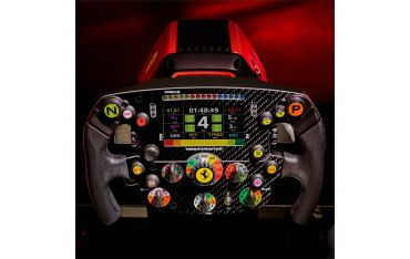 Replica in scala 1:1 del volante della monoposto da corsa Ferrari SF1000, questo volante da corsa è dotato di 21 LED e un display da 109 mm in grado di visualizzare fino a 69 diverse informazioni nei giochi*. I suoi 25 pulsanti (compresi 7 codificatori) ti permettono di controllare i parametri del tuo veicolo. La placca centrale, totalmente in fibra in carbonio, unisce rigidità e design filante, per aiutarti a dominare le tue gare.