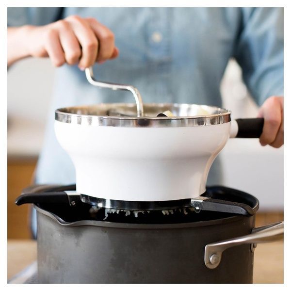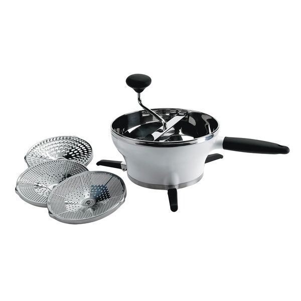 Sia che stiate preparando cibo caldo o freddo, la ciotola interna in acciaio inossidabile aiuta a mantenere la temperatura e non si macchia. Il passaverdura è dotato di tre dischi in acciaio inossidabile per alimenti di consistenza fine, media e grossolana. I dischi possono essere facilmente sostituiti con il pulsante di rilascio. Le gambe si ripiegano per essere riposte in modo compatto.