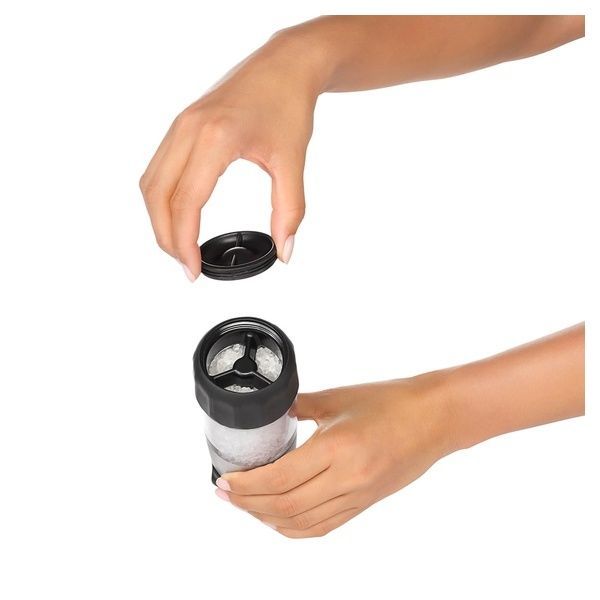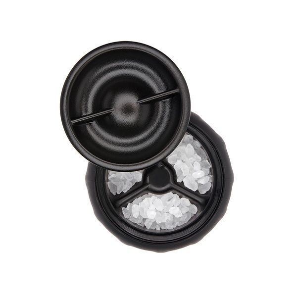 Dispenser per macinare, servire e conservare il sale con diametro del chicco regolabile fino a 5 finiture differenti.