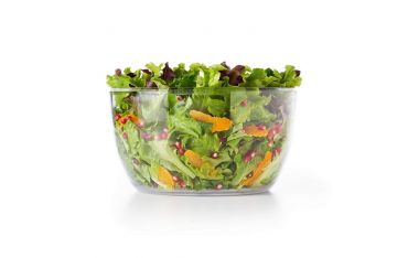Basta inserire il cestello nella ciotola, mettere le verdure da asciugare e coprire con il coperchio. Spingendo il pistone, il meccanismo farà girare automaticamente il cestello e l'insalata sarà pronta in un attimo.