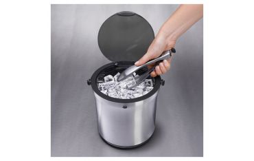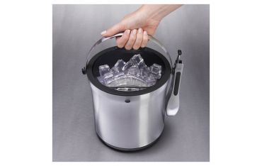 Secchiello a doppia parete in grado di mantenere il ghiaccio a una temperatura costante e a impedire la formazione di condensa all’esterno. Il coperchio trasparente permette l’apertura con una sola mano e una chiusura sicura, mentre la base antiscivolo mantiene il secchiello stabile. Il set viene fornito con pinze dotate di denti affilati per afferrare facilmente i cubetti di ghiaccio.