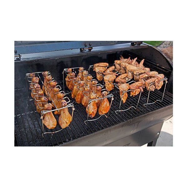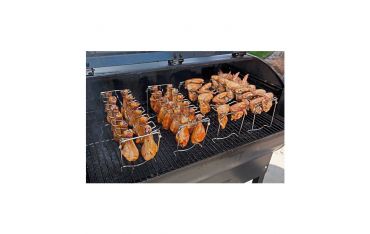 Tutto ciò di cui hai bisogno per deliziose ali di pollo dalla griglia a pellet o dall'affumicatore è il supporto per ali e cosce di pollo. Può contenere fino a 12 cosce o ali di pollo, perfette per un aperitivo o uno spuntino. Il resistente acciaio nichelato durerà a lungo e la pulizia è facile.