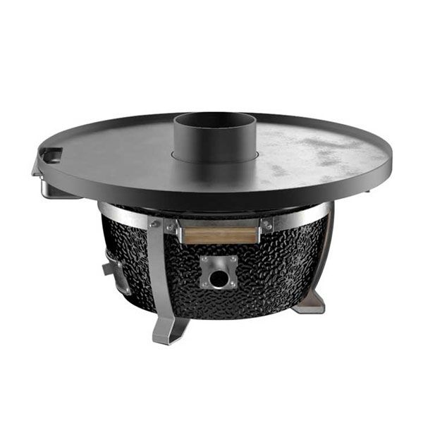 Questa piastra in acciaio da 6 mm, con un diametro di 60 cm trasforma il Monolith in un Fry Top o una Plancha. Va posizionata sulla base dell'Icon/Junior dopo aver rimosso il coperchio. Grazie al sistema di areazione del Monolith, con bocchetta inferiore e valvola collocata sopra al camino, la temperatura del piano in acciaio può essere regolata e gestita facilmente.
