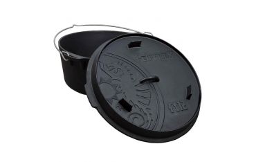 Grazie alle eccellenti proprietà della ghisa e alla speciale struttura della superficie, il calore viene immagazzinato e trasmesso in modo efficiente. La superficie pretrattata (finitura stagionata) rende superflua una prima stagionatura e il robusto Dutch Oven può essere utilizzato immediatamente. All'esterno si usa sul fuoco aperto o con carbonella e bricchetti. Il bordo rialzato del coperchio consente di posizionare braci o carbonella sul Dutch Oven. Il Dutch Oven è riscaldato da tutti i lati ed è adatto anche per cuocere il pane, ad esempio.