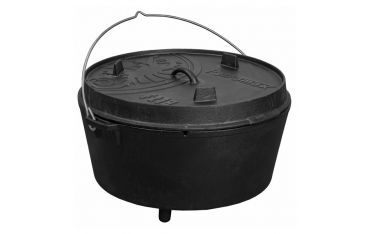 Grazie alle eccellenti proprietà della ghisa e alla speciale struttura della superficie, il calore viene immagazzinato e trasmesso in modo efficiente. La superficie pretrattata (finitura stagionata) rende superflua una prima stagionatura e il robusto Dutch Oven può essere utilizzato immediatamente. All'esterno si usa sul fuoco aperto o con carbonella e bricchetti. Il bordo rialzato del coperchio consente di posizionare braci o carbonella sul Dutch Oven. Il Dutch Oven è riscaldato da tutti i lati ed è adatto anche per cuocere il pane, ad esempio.