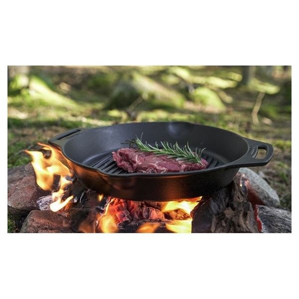 La padella per grigliare Petromax dona ai tuoi piatti un sapore incredibile, come se fossero stati appena tolti dalla griglia. Può essere utilizzata indifferentemente sul fuoco di un falò o sul fornello di casa, sia da chi cucina per hobby che da un cuoco professionista. La superficie ondulata non solo dona al cibo i tipici segni della grigliatura, ma consente anche una cottura salutare e povera di grassi.