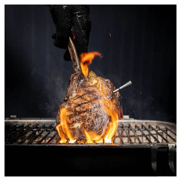 Grill a calore diretto fino a 550°C. Ora puoi lasciare la sonda nella carne su una fiamma libera durante la cottura e la rosolatura.