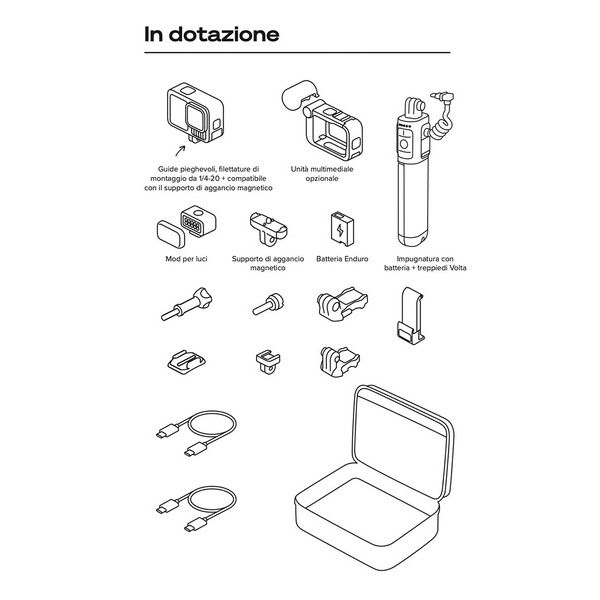 Dedica più tempo alla registrazione e meno tempo alla ricarica. La batteria Enduro da 1900 mAh con capacità superiore garantisce una maggiore autonomia in tutte le condizioni, dal caldo al freddo estremi. Avrai a disposizione 1,5 ore di registrazione continua in 4K30 o 5,3K30 e oltre 2,5 ore di registrazione continua a 1080p30.