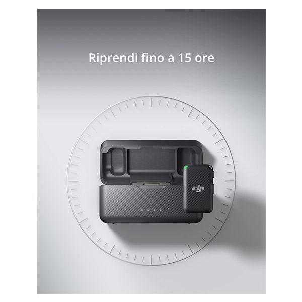 Cerchi un sistema in grado di stare al passo con le tue esigenze? Ottieni un'intera giornata di registrazione audio con DJI Mic. Goditi 5,5 ore di durata della batteria dai trasmettitori, 5 ore dal ricevitore e fino a 15 ore con la custodia di ricarica.[3]