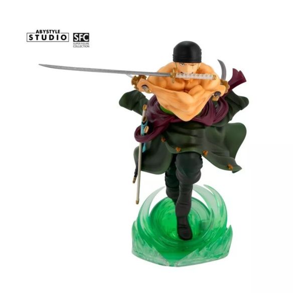 Scopri Zoro, il temibile spadaccino della Ciurma di Cappello di Paglia! Con la sua determinazione incrollabile e la maestria senza pari nell’arte della spada, il Cacciatore di Pirati taglia la scena con la collezione SFC di ABYstyle Studio. Ammira la sua incredibile padronanza della tecnica delle Tre Spade, maneggiando con abilità le leggendarie Wado Ichimonji, Sandai Kitetsu e Shusui per sconfiggere tutti i suoi nemici!