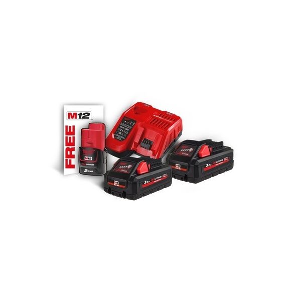 Energy Kit Caricabatteria + 2 Batterie M18 3AH + 1 Batteria M12 2AH Extra Milwaukee M18 HNRG-302 - 4933471071
