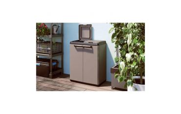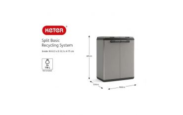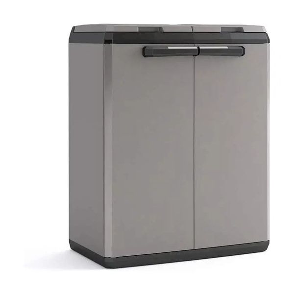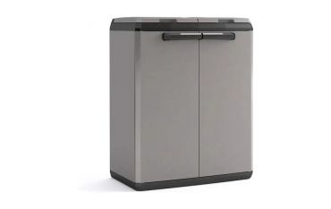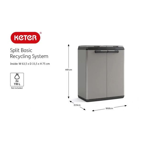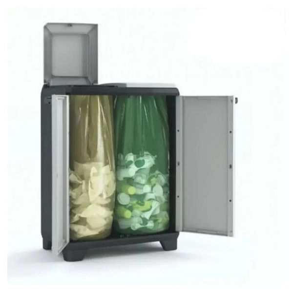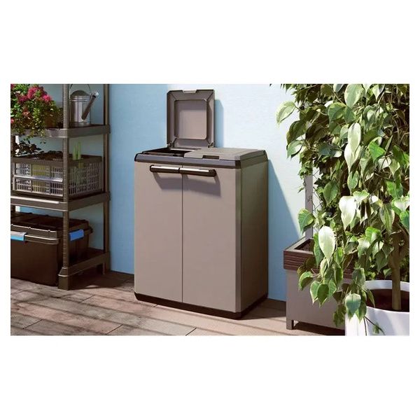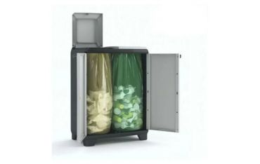 Armadio per raccolta differenziata Split Basic Keter. Questo armadio da esterno è caratterizzato, nella parte interna, da due unità pensate per il riciclaggio separato.