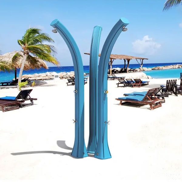 Questo tipo di doccia esterna contiene un serbatoio di 44 litri, in cui l'acqua viene riscaldata dalla luce solare diretta.