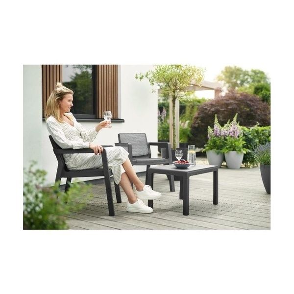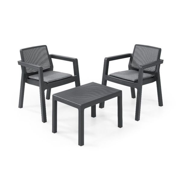 Salottino da Esterno Keter Emily Balcony 3PZ in Resina con Cuscini Grafite - K247065