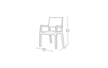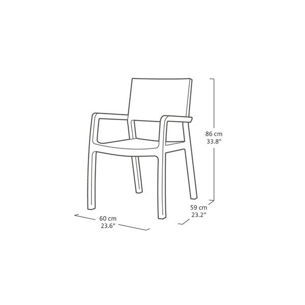 Realizzata con struttura lineare e con doghe con finitura effetto Legno, Harmony Armchair dona un aspetto unico ad ogni giardino o terrazzo. Fornisce un comfort unico grazie all’ampio schienale e ai comodi braccioli. Grazie all’utilizzo di resina durevole, resistente agli agenti atmosferici e ai raggi UV, può essere lasciata all’aperto senza alcuna preoccupazione. Per rimettere a nuovo la sedia, basta semplicemente uno straccio e un po’ d’acqua. Completa combinando la sedia con la selezione di tavoli della famiglia Harmony.