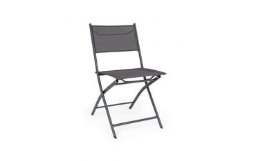 Sedia pieghevole in acciaio trattato per l'esterno, resistente alle intemperie e ai raggi UV. Seduta e schienale in textilene 2x1. Colore antracite.