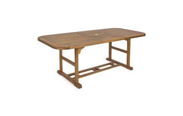 Tavolo da giardino allungabile realizzato in legno di acacia, doppio bordo, finitura ad olio.