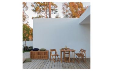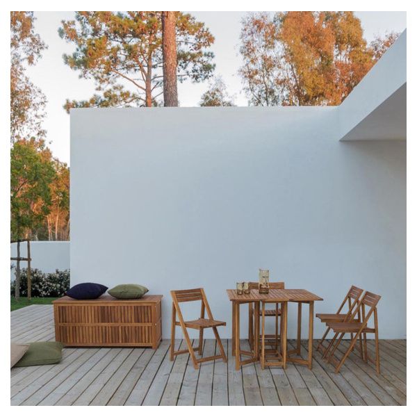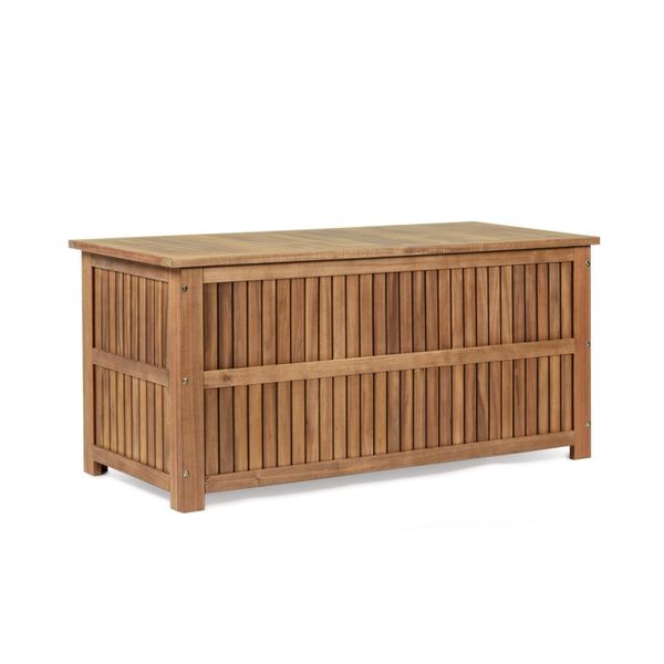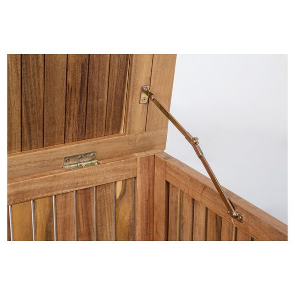 Baule portacuscini in legno di acacia con finitura ad olio. Viteria in acciaio galvanizzato.