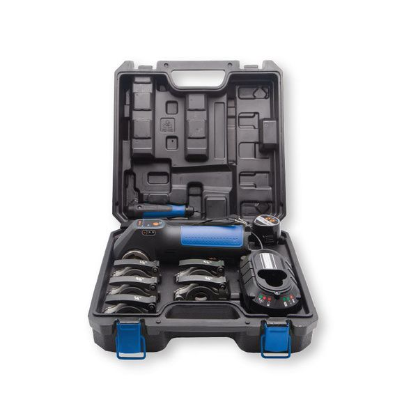 Flangiatubo a batteria per tubi in pollici con diametro 1/4, 3/8, 1/2, 5/8, 3/4. Design SLIM, maneggevole perché leggero, esegue flange precise e delineate su tubi in pollici con diametro 1/4, 3/8, 1/2, 5/8, 3/4, grazie ai morsetti utilizzabili in posizioni diverse di cui è dotato che consentono di effettuare flangiature in spazi ristretti. Realizza flange in pochi secondi ed ha una capacità produttiva di circa 135 lavorazioni a batteria carica. Il cono ad eccentrico rende la flangia liscia ed uniforme. È dotato di luce diretta sull’area di lavoro, facilitando le operazioni di flangiatura. È fornito in pratica valigetta in ABS che comprende 1 batteria, 1 caricabatteria, 1 sbavatubo e 5 morsetti, forniti anche come ricambi.