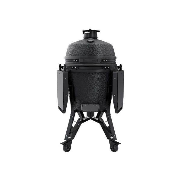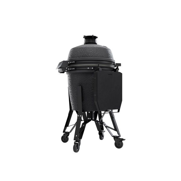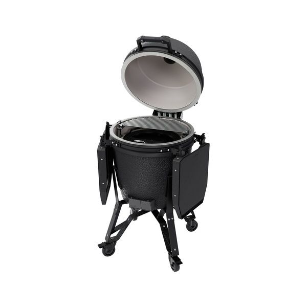 La praticità è garantita grazie al supporto con ruote, che permette di spostare facilmente il kamado ovunque tu voglia. Il design parzialmente preassemblato rende il montaggio rapido e senza problemi, mentre i due ripiani laterali in acciaio, intercambiabili e sostituibili, ti offrono ampio spazio per appoggiare utensili o ingredienti durante la cottura, mantenendo tutto a portata di mano.