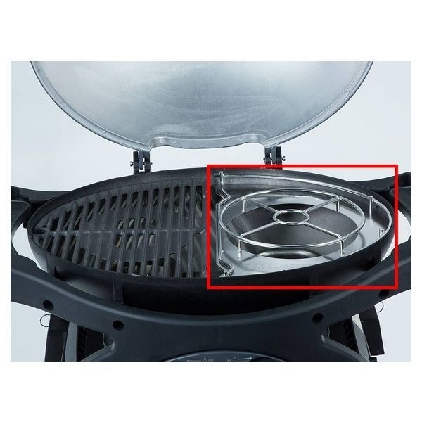Per un'esperienza culinaria all'aperto premium, gli accessori aggiuntivi acquistabili includono una piastra reversibile, un sottopentola reversibile, una griglia superiore, un coperchio e un carrello deluxe con vassoio per condimenti, vano portaoggetti integrato e ripiano inferiore.