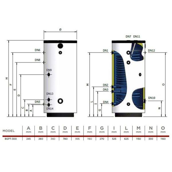 Bollitore Vetrificato con Due Scambiatori Fissi Elbi BSPT 300 LT Per Pompa di Calore - A3T2L51-VG250