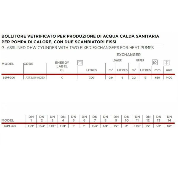 Bollitore Vetrificato con Due Scambiatori Fissi Elbi BSPT 300 LT Per Pompa di Calore - A3T2L51 VG250