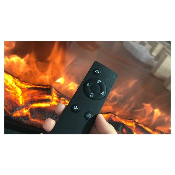 Due step di potenza 750-1500W. Possibilità di comandarlo manualmente o con il telecomando incluso. Possibilità di usare il solo effetto fiamma senza la funzione riscaldamento.