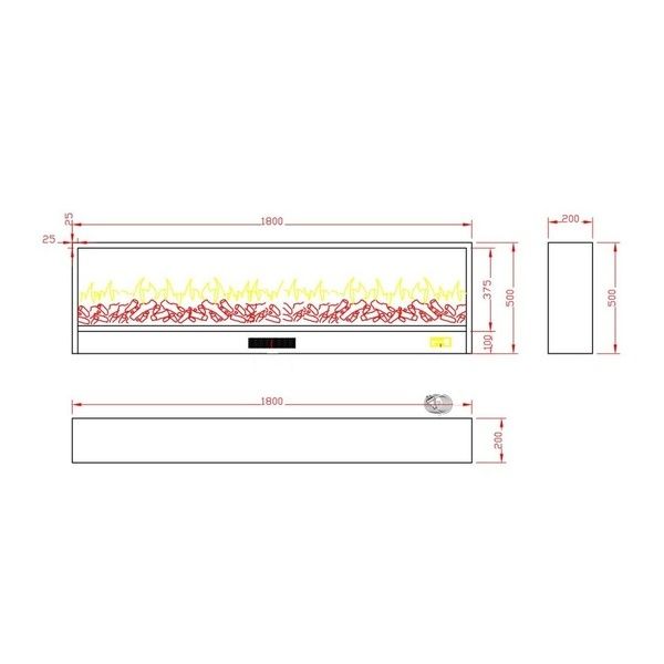 Caminetto Elettrico da Incasso e Appoggio Sined Amiata 180CM 1500W Nero - CAMINETTO-AMIATA-180