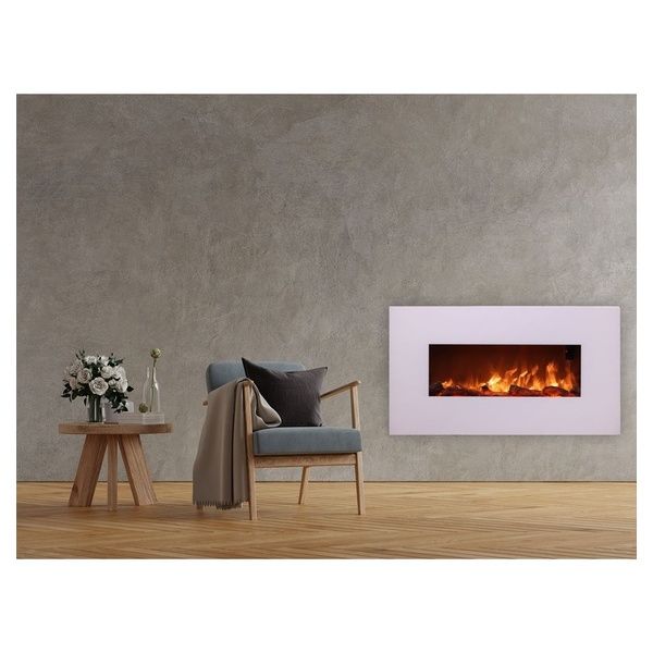 Caminetto Elettrico da Parete Sined Monte Bianco 98CM 1500W Effetto Fiamma Led Bianco - CAMINETTO-PARETE-MONTE-BIANCO