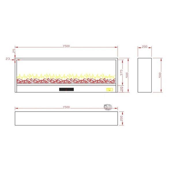 Caminetto Elettrico da Incasso e Appoggio Sined Vulture 150CM 1500W Nero - CAMINETTO-VULTURE-150