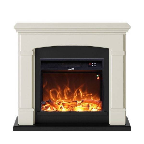 Caminetto Elettrico da Appoggio con Cornice Sined Siena 107,2CM 1500W Bianco Crema - CAMINO-SIENA-BIANCO-CREMA