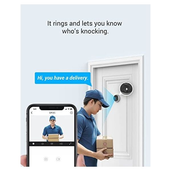 Quando un visitatore preme il pulsante del campanello, udirai una piacevole suoneria prodotta dal segnalatore acustico integrato nell'unità DP2C e riceverai una videochiamata in tempo reale sul cellulare. In questo modo, saprai come rispondere ancora prima di aver aperto la porta.