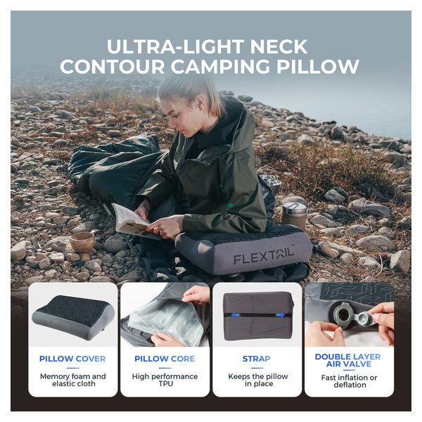 Cuscino da Campeggio Gonfiabile Flextail Zero Pillow Grigio Antracite