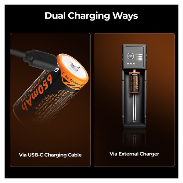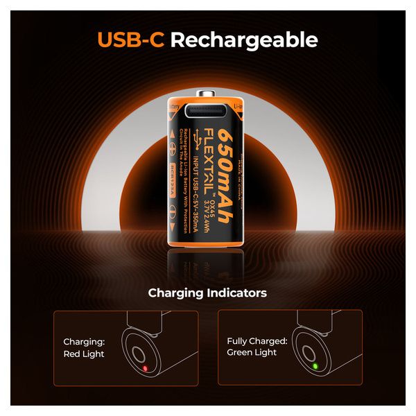 - 1x batteria ricaricabile 3,7V 650mAh con porta USB