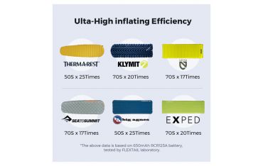 Piccola ma potente: combinando la tecnologia brevettata AIRVORTECH™ 2.0 con un esclusivo micromotore, ZERO PUMP riduce le dimensioni dell'unità pur mantenendo prestazioni superiori. Può gonfiare il materassino in soli 50 secondi e gonfiare fino a 25 materassini di fila. Compatibile con marchi come THERM-A-REST, KLYMIT, NEMO, SEA TO SUMMIT, BIG AGNES e EXPED. ZERO PUMP è uno strumento insostituibile al tuo fianco.