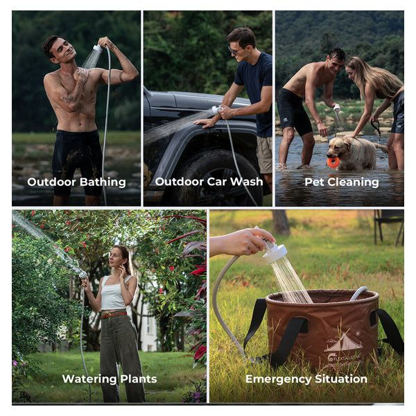 Adatto a varie scene all'aperto: docce all'aperto, lavaggio auto, pulizia degli animali domestici, esplorazione della natura selvaggia, vacanze al mare, nonché attività all'aperto come viaggi, escursioni, viaggi in auto, pesca, ecc.