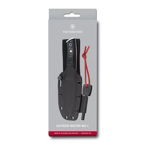 L’Outdoor Master Mic L è un coltello che fa scintille. Il design a codolo intero garantisce una resistenza ottimale perché la lama scorre perfettamente attraverso il manico; in più, questo coltello è dotato di robuste guance Micarta. La lama drop-point è stata realizzata con una molatura scandinava facile da affilare, mentre l’elegante fodero Kydex offre il massimo della protezione. Il fodero Kydex è compatibile con il Tek-Lok System. Si tratta di un coltello affidabile sotto ogni punto di vista e garantisce potenza, precisione e versatilità.